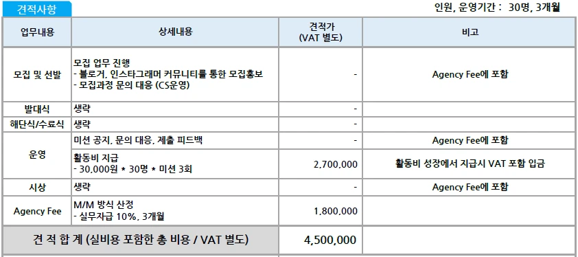 서포터즈 운영 예산 견적