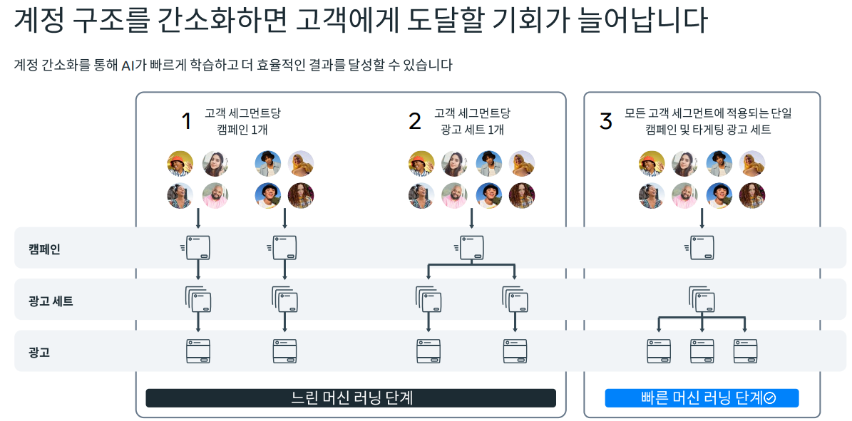 예를 들어, 오늘 세션에서 강조되었던 이야기 중, 계정을 간소화하면 고객에게 도달할 기회가 늘어난다는 꼭지가 있었는데요.